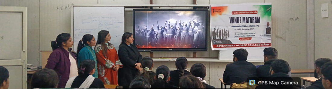 Government Degree College (GDC) Marh organised debate and essay writing competitions focusing on the historical relevance and contemporary significance of Vande Mataram, besides screening a short film highlighting its inspirational role in India’s freedom struggle. The principal lauded the initiative, stating that such engagements help youth connect with the nation’s legacy and democratic ideals.