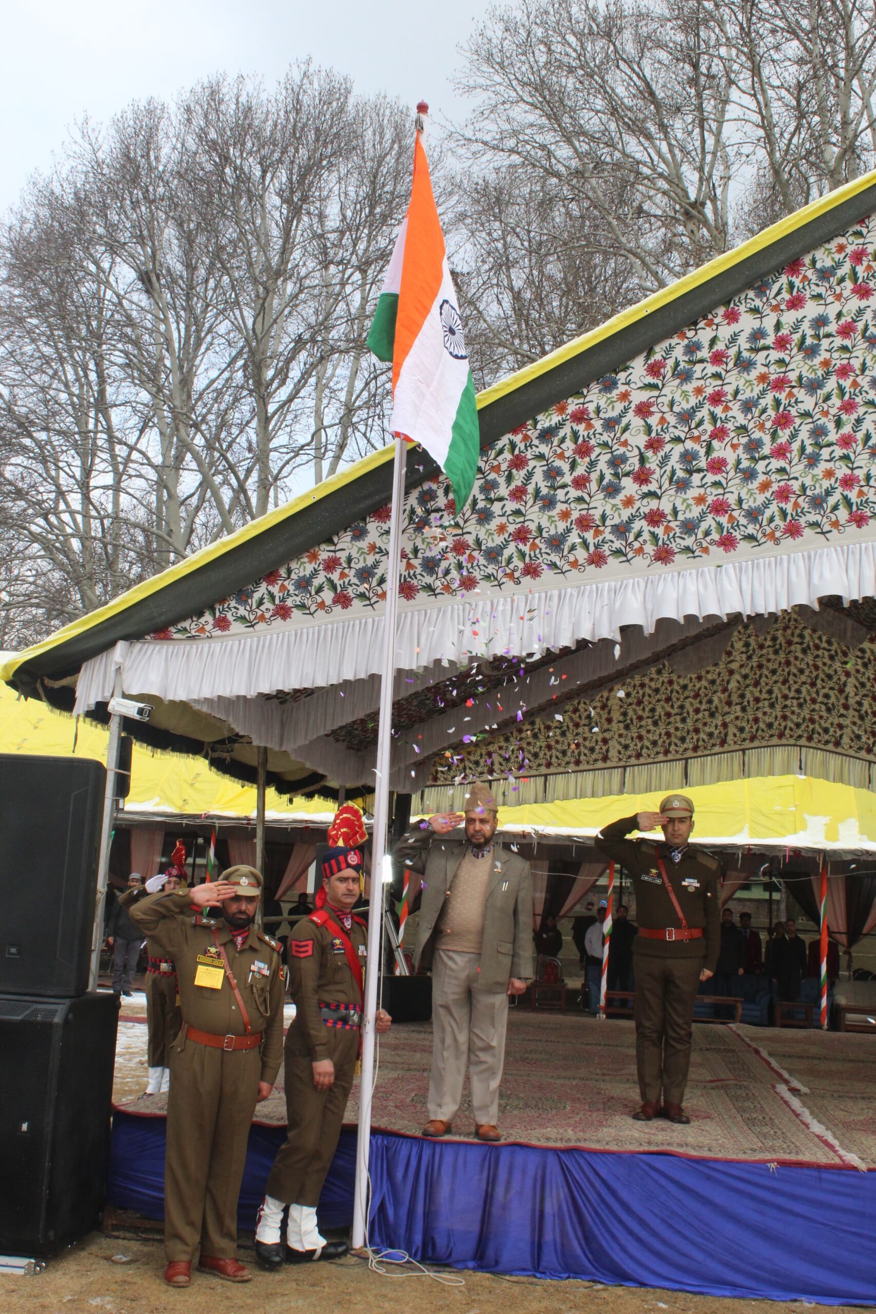 The ceremony was presided over by ADDC Ganderbal, Shri Manzoor Ahmad Bhat–JKAS who unfurled the National Flag. He was accompanied by Addl. SP Ganderbal, Shri Owaise Loun–JKPS, and inspected the parade contingents participating in the rehearsal.
